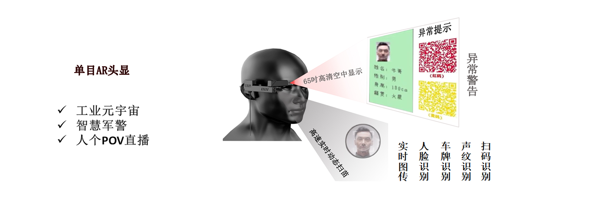 機場,港口等非接觸檢票,通過后臺大數據與現場頭戴式攝像機與AR實線AI人臉識別等遠距離引流人流,高效,安全。無線防抖頭盔...